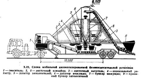 Рисунок 14 – Схема мобильной автоматической бетоносмесительной установки Способ транспортирования бетона зависит от объема укладываемого бетона и дальности перевозки (время на доставку не должно превышать двух часов). Перевозят бетонную смесь следующим транспортом: ¾ автосамосвалами; ¾ авто-бетоновозами; ¾ авто-бетоносмесителями. Подача бетонной смеси в конструкцию производится: ¾ краном подъемником; ¾ бетононасосом (до 300м по горизонтали и 40м по вертикали). При укладке бетонной смеси в конструкции, необходимо придерживаться следующих правил: ¾ при бетонировании фундаментов смесь в опалубку укладывают слоями, толщиной 20-40см; ¾ колонны высотой менее 6м бетонируют на всю высоту с верха, при чем с начала укладывают слой цементного раствора и слой мелко зернистого бетона для схватывания с бетоном фундамента; ¾ при высоте колонн более 6м смесь подают ярусами, выстой 30-50см по лоткам, трудам и другим приспособлениям; ¾ бетонирование прогонов и балок начинается через 1-2 часа после окончания бетонирования колонн, прогоны и балки бетонируют одновременно с плитами перекрытия; ¾ укладка бетона в конструкции должна производиться непрерывно. Если по условиям работы необходимы перерывы то устраивают рабочие швы: ¾ в колоннах – на уровне верха фундамента, под консолями и у нижней грани балки (см.рисунок 15);