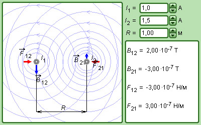Закон Био–Савара. Теорема о циркуляции Ампер – сила неизменяющегося тока, который при прохождении по двум параллельным проводникам бесконечной длины и ничтожно малого кругового сечения, расположенным на расстоянии 1 м один от другого в вакууме, вызвал бы между этими проводниками силу магнитного взаимодействия, равную 2·10–7 Н на каждый метр длины.