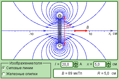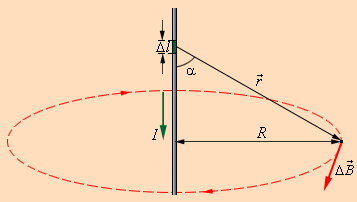 Здесь r – расстояние от данного участка Δ l до точки наблюдения, α – угол между направлением на точку наблюдения и направлением тока на данном участке, μ0 – магнитная постоянная. Направление вектора