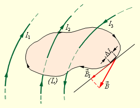 Некоторые токи, создающие магнитное поле, могут пронизывать выбранный контур L в то время, как другие токи могут находиться в стороне от контура. Теорема о циркуляции утверждает, что циркуляция вектора