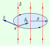 Сила Лоренца в этом случае играет роль центростремительной силы (рис. 1.18.2).