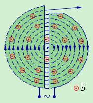 называется циклотронной частотой. Циклотронная частота не зависит от скорости (следовательно, и от кинетической энергии) частицы. Это обстоятельство используется в циклотронах – ускорителях тяжелых частиц (протонов, ионов). Принципиальная схема циклотрона приведена на рис. 1.18.3.