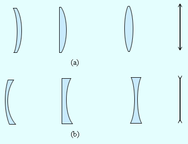 Линзой называется прозрачное тело, ограниченное двумя сферическими поверхностями. Если толщина самой линзы мала по сравнению с радиусами кривизны сферических поверхностей, то линзу называют тонкой. Линзы входят в состав практически всех оптических приборов. Линзы бывают собирающими и рассеивающими. Собирающая линза в середине толще, чем у краев, рассеивающая линза, наоборот, в средней части тоньше (рис. 3.3.1).