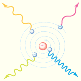 Первый постулат Бора (постулат стационарных состояний) гласит: атомная система может находится только в особых стационарных или квантовых состояниях, каждому из которых соответствует определенная энергия En. В стационарных состояниях атом не излучает. Квантовые постулаты Бора Планетарная модель атома, предложенная Резерфордом, – это попытка применения классических представлений о движении тел к явлениям атомных масштабов. Она оказалась несостоятельной. Классический атом неустойчив. Электроны, движущиеся по орбите с ускорением, должны неизбежно упасть на ядро, растратив всю энергию на излучение электромагнитных волн (рис. 6.2.1).