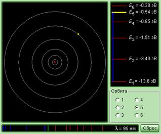 Целое число n = 1, 2, 3,... называется в квантовой физике атома главным квантовым числом. Согласно второму постулату Бора, при переходе электрона с одной стационарной орбиты с энергией En на другую стационарную орбиту с энергией Em < En атом испускает квант света, частота ν nm которого равна Δ Enm / h: