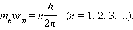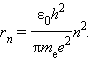 где e – элементарный заряд, ε0 – электрическая постоянная. Скорость электрона υ и радиус стационарной орбиты rn связаны правилом квантования Бора. Отсюда следует, что радиусы стационарных круговых орбит определяются выражением