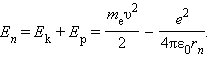 Следует отметить, что E p < 0, так как между электроном и ядром действуют силы притяжения. Подставляя в эту формулу выражения для υ2 и rn, получим: