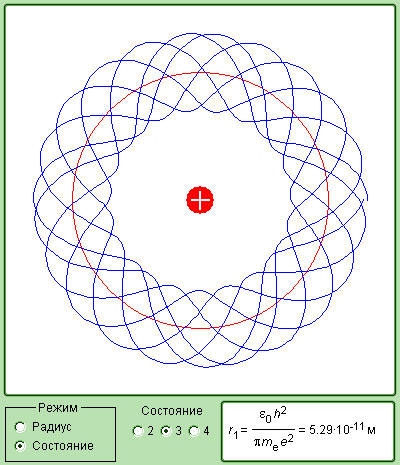 Самой близкой к ядру орбите соответствует значение n = 1. Радиус первой орбиты, который называется боровским радиусом, равен