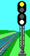 Один желтый и один лунно-белый огни Один зеленый и один лунно-белый огни "Разрешается поезду отправиться со станции, впереди свободны два или более блок-участка" (рис.2.10); "Разрешается поезду отправиться со станции, впереди свободен один блок-участок" (рис. 2.11); "Стой! Запрещается проезжать сигнал".