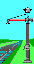 "Заграждение с пути снято" - днем виден белый круг или прямоугольник с вертикальной черной полосой; ночью - молочно-белый огонь с той же черной полосой (рис. 5.6).