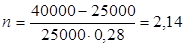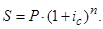 2. Используем формулу для определения наращенной суммы при заданном множителе наращения: S = P x kн. S = 20 x 1,72 = 34,4 тыс.руб. Ответ: множитель наращения равен 1,72, а наращенная сумма – 34,4 тыс.руб. Пример 3. Определить период начисления, за который первоначаль-ный капитал в размере 25000 руб. вырастет до 40000 руб., если используется простая ставка 28 процентов годовых. Решение. По условию задачи наращенная сумма (S) составляет 40000 руб., а первоначальная (P) - 25000 руб.; относительная величина простой процентной ставки (i) составит 0,28. По формуле для определения периода начисления: Ответ: период начисления составит 2,14 года, т.е. 2 года и 2 месяца. Пример 4. Определить простую ставку процентов, при которой первоначальный капитал в размере 24000 руб. достигнет 30000 руб. через год. Решение: По условию задачи величина первоначальной денежной суммы (P) составляет 24000 руб.; наращенной суммы (S) - 30000 руб., продолжительность периода начисления процентов в годах (n) - 1 год. По формуле для определения относительной величины простой процентной ставки Ответ: простая процентная ставка составит 25% годовых. Сложная процентная ставка — это такая ставка, при которой процент начисляется на постоянно нарастающую базу с учетом процентов, начисленных в предыдущие периоды («проценты на проценты»): Для сложных процентов Множитель наращения kн.с. соответственно будет равен kн.с. = (1 + ic) n. Если срок ссуды n в годах не является целым числом, множитель наращения определяют по выражению: kн.с. = (1 + ic) nа (1+ nb ic), где n = n а + n ь; n а – целое число лет; n ь – оставшаяся дробная часть года. Пример 5. Первоначальная сумма долга (Р) равна 50 тыс.руб. Определить наращенную сумму (S) через 2,5 года по ставке 25% годовых.