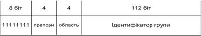 Формат групової адреси Двійкова послідовність 11111111 на початку адреси визначає тип – групова адреса. Прапори – це набір з чотирьох прапорів: