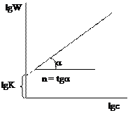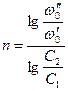 где ω 0² - скорость реакции при исходной концентрации реагирующего вещества с2; ω 0¢ - скорость реакции при исходной концентрации реагирующего вещества с1. Логарифмируя уравнения, почленно вычитая их друг из друга и решая относительно n, получим: