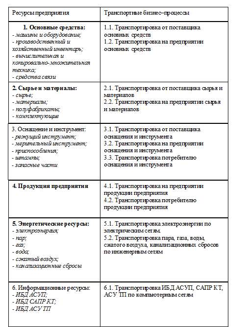 Транспортные бизнес–процессы В соответствии с процессной моделью машиностроительного предприятия состав транспортных бизнес–процессов представлен в табл. 4.2