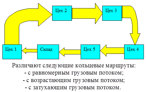 Пример схемы кольцевого маршрута с затухающим грузопотоком приведен на рис. 4.10.