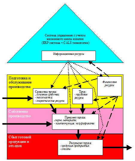 Рис. 5.1. Укрупненная схема предприятия: производство, организация, управление и ресурсы