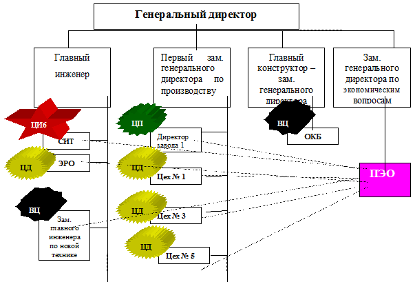 Рис 5.3. Схема организационной структуры предприятия с маркировкой по центрам финансовой ответственности.
