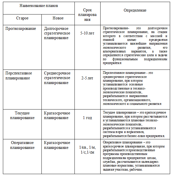Вопрос 4. Система планов предприятия Работа в рыночных условиях характеризуется тем, что прогнозирование и планирование осуществляется не государством или отраслью, а самим предприятием. Структура всех видов планирования, на основании которой должна строится система планов предприятия, представлена в табл.5.1.