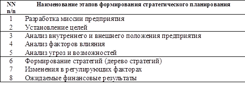 Таблица 5.3. Последовательность формирования стратегического планирования