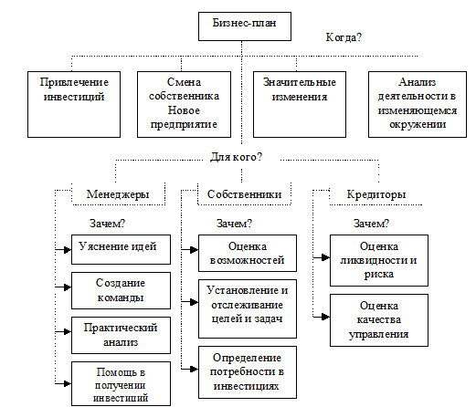 Бизнес-план разрабатывается с целью обоснования экономической целесообразности направлений развития предприятия–стратегии, концепции, проектов, расчета ожидаемых финансовых результатов деятельности, в том числе продаж, прибыли, доходов предприятия, определения источников финансирования реализации выбранной стратегии. Основные черты бизнес-плана: 1) бизнес-планирование существенно отличается от технико-экономического планирования (ТЭП), а также от технико-экономического обоснования (ТЭО) проектов; 2) бизнес-план в отличие от ТЭП имеет четко отчерченный временной период, по истечении которого цель и задачи, определенные бизнес-планом, должны быть выполнены, а ТЭП осуществляется непрерывно на всех уровнях управления предприятием; 3) бизнес-план в основном предназначен для обоснования инновационного проекта с целью привлечения инвесторов, то есть имеет не только внутреннюю, как ТЭП, но и внешнюю направленность; 4) бизнес-план разрабатывается под руководством и при личном участии руководителя предприятия, в то время как ТЭП занимаются профессиональные экономисты-менеджеры и плановики линейных и функциональных подразделений предприятия; 5) в бизнес-плане в отличие от ТЭО проекта освещаются как технические и производственно-экономические аспекты, так и коммерческие и рыночные.