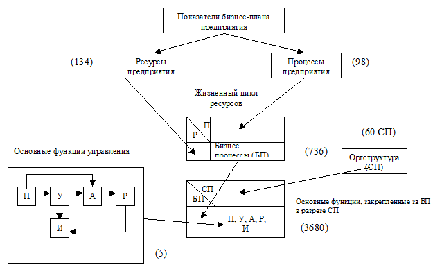 Рис.6.7. Структура основных показателей процессной модели для среднего машиностроительного предприятия