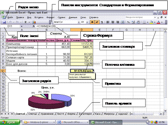 Рис.4.1. Вікно програми Ms Excel.