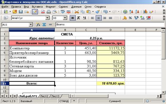 Рис.4.2. Вікно програми Ooo Calc.