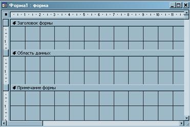 Структура форми в режимі конструктора розділена на три окремі розділи: заголовок форми, область даних і примітка форми.