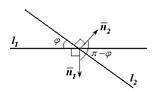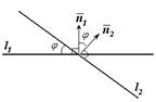 Взаимное расположение прямых на плоскости характеризуется также углом между прямыми. Он однозначно определяется углом между нормальными векторами этих прямых и , который обозначим через . Тогда: