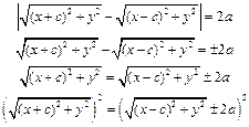 Def.Гиперболой называется геометрическое место точек плоскости, модуль разности расстояний от которых до двух данных точек (фокусов) есть величина постоянная (меньшая чем расстояние между фокусами). Обозначим расстояние между фокусами (фокальное расстояние) через