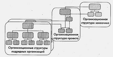 Складні організаційні структури. За участі у проекті більше двох різних організацій, що мають різні за значенням функції у цьому проекті, реалізуються так звані складні організаційні структури управління проектами, які мають три різновиди: