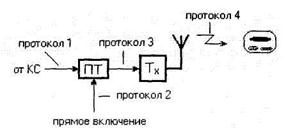 ПТ – пейджинговый терминал. КС – контроллер сети (вход от других компьютерных сетей и пейджинговых терминалов) Рпер – радиопередатчик Протокол №1: TNPP – протокол вхождения в пейджинговый терминал. Протокол №2: ТАР Протокол №3: специальный протокол завода – изготовителя. Протокол №4: протокол радиоинтерфейса. Наиболее часто используется POCSAG. Еще разработаны перспективные высокоскоростные протоколы FLEX и ERMES.