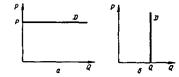 Рис. 24 - Крайние случаи эластичности: а - спрос абсолютно эластичен, б - спрос абсолютно неэластичен