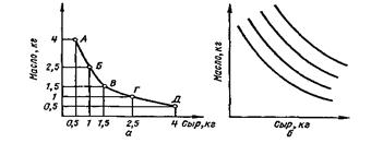 На основании этой таблицы можно построить график, или так называемую кривую безразличия. Все соотношения количеств масла и сыра, лежащие на этой кривой, для потребителей равноценны (рис. 28, а). Используя другие возможные варианты сочетания продуктов, можно составить карту безразличия, которая представляет собой семейство кривых безразличия при различных количествах предлагаемых товаров. На рисунке 28, б изображены четыре кривых безразличия, однако в принципе кривая может быть проведена через любую точку.