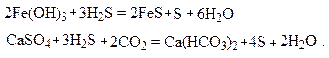 Свободная сера может образоваться также за счёт окисления сероводорода оксидами металлов, присутствующими в отложениях или же растворёнными в водах сульфатами: