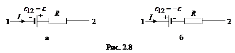 Для однородного участка цепи, то есть для участка, на котором не действуют сторонние силы, закон Ома записывается в форме (2.8). Рассмотрим теперь неоднородный участок цепи 1-2 (рис. 2.8), где действует ЭДС источника