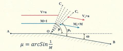 Рис. 6.3.4 Схема образования скачка уплотнения