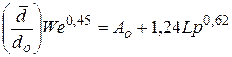 При больших скоростях газового потока (порядка звуковых) может иметь место аэродинамическое дробление капель, заключающееся в том, что при наличии нестационарных аэродинамических сил, появляющихся, например, при пересечении каплей скачков уплотнения, при образовании нестационарного вихревого следа за каплей и т.п., могут возникнуть вынужденные колебания формы капли с ее распадом при достижении критического значения амплитуды. Кроме того, в потоке имеет место механическое дробление капель при взаимодействии друг с другом и твердыми поверхностями. Можно выделить две критические скорости несущего потока, определяющие интервал развития неустойчивости капель. При скорости Wкр.1, соответствующей значению Wекр.1»10,7, начинают дробиться отдельные капли, которые распадаются на две почти равные части, причем образуются также несколько мелких капелек. При скорости Wкр.2, соответствующей Wекр.2»14, дробятся все капли данного диаметра dо, причем капли распадаются на большое количество капелек, диаметры которых не одинаковы, но значительно меньше dо. Средний диаметр образующихся капель, кроме перечисленных теплофизических параметров и критериев, зависит также от конструкции устройства (форсунки) с помощью которой производится распыл жидкости (жидкое топливо). Расчетные формулы для определения среднего диаметра образующихся капель имеют вид: при