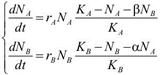 Ò Na, Nb - численность видов Ò Ka,Kb – емкость среды Ò ra,rb – биотический потенциал Ò β,α – коэффициенты влияния друг на друга