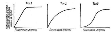 § Функциональная реакция. При увеличении плотности жертвы до определенного предела количество особей жертвы, пойманных и съеденных хищником в единицу времени, возрастает. После достижения порога насыщения количество съеденных жертв становится более или менее постоянным. § Численная реакция. Возрастание плотности жертв приводит к увеличению плотности популяции хищника, при этом большее число хищников питается большим числом особей жертв.