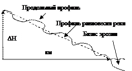 ΔH дна реки над базисом эрозии на всем протяжении реки, выражается графиком, который называется продольным профилем реки. Этот профиль не постоянен и меняется в течении всей жизни реки, поскольку река размывает свое дно и откладывает складки. В конце концов, этот профиль выравнивается и получает название продольный профиль равновесия.