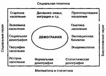 Методы исследования в демографии Демография в исследовании своего предмета - естественного воспроизводства населения - использует различные методы, основные из которых можно объединить по их характеру в три группы: статистические, математические и социологические. В 60-е гг. в работах прежде всего Д.И. Валентея была выдвинута идея о необходимости создания комплексной науки о народонаселении.Задача последней виделась в том, чтобы на основе использования и интеграции методов и знаний целого ряда наук, имеющих своим объектом население, давать теоретическое объяснение демографическим и другим процессам, совершающимся в населении, и вырабатывать практические рекомендации по решению проблем народонаселения. Демография внутри себя разделилась на целый ряд специализированных отраслей или даже наук. Внутри нее выделяются такие отрасли, как общая теория демографии, демографическая статистика, математическая, экономическая, историческая, этническая, социологическая демография, медицинская демография и т.п. Демография как система наук