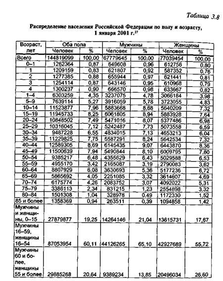 Возрастной структурой населения называется распределение населения по возрастным группам и возрастным контингентам. Информация о возрастной структуре населения необходима для исследования многих социально-экономических и демографических процессов. Зная особенности возрастной структуры населения в тот или иной период времени, можно строить достаточно обоснованные предположения о будущих тенденциях рождаемости и смертности, других демографических процессов, воспроизводства населения в целом (оценивать вероятности возникновения тех или иных проблем в экономической и социальной сферах, прогнозировать спрос на те или иные товары или услуги, результаты выборов в том или ином регионе и т.д.). Обычно возрастная структура строится и рассматривается одновременно с половой структурой населения. В этом случае она называется возрастно-половой, или половозрастной, структурой населения и показывает как распределение численностей каждого пола по возрастам, так и соотношение полов в каждом возрасте или в каждой возрастной группе. Кроме возрастных групп, при анализе возрастной структуры в зависимости от конкретных целей выделяют также так называемые возрастные контингенты. Возрастной контингент - это группа лиц, объединенных как общим для них возрастом, так и некоторым социально-экономическим или иным признаком. Отечественная статистика выделяет целый ряд такого рода групп, состав которых определяется как физиологическими особенностями людей, так и наличными общественными отношениями и отражающим их законодательством. В числе таких возрастных контингентов можно назвать: ясельный (дети в возрасте 0-2 года), дошкольный (дети в возрасте 3-6 лет), школьный (дети и подростки в возрасте 7-15 лет), трудоспособный (мужчины в возрасте 16-59 лет и женщины в возрасте 16-54 года), репродуктивный (детородный) (женщины в возрасте 15-49 лет), призывной (мужчины в возрасте 18-50 лет), электоральный (мужчины и женщины старше 17 лет) и т.д. Как видно из этого перечня, возрастные контингенты выделяются обычно в связи с различной функциональной ролью, которая свойственна тем или иным возрастам.