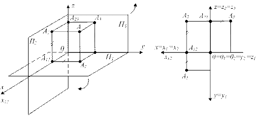 Присоединение системы координат к системе плоскостей проекций