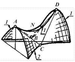 Рисунок 3.14 Вопросы для самоконтроля: 1) Как образуются кинематические поверхности? 2) Что представляет собой определитель поверхностей? 3) Дайте определение призматической поверхности и ее геометрического определителя. 4) Дайте определение пирамидальной поверхности и ее геометрического определителя. 5) Дайте определение цилиндрической поверхности и ее геометрического определителя. 6) Дайте определение конической поверхности и ее геометрического определителя. 7) Дайте определение конической поверхности вращения и ее геометрического определителя. 8) Что называется сферой? Дайте определение геометрического определителя сферы, как поверхности вращения.
