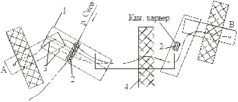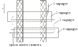 Рисунок 1 - Маршрутная аэросъемка местности 1 - основные аэромаршруты; 2 – сложные места трассирования; 3 – трасса; 4 – каркасные маршруты