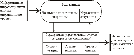 Обработка данных. Используются следующие типовые операции: · классификация или группировка. Первичные данные обычно имеют вид кодов, состоящих из одного или нескольких символов. Эти коды, выражающие определенные признаки объектов, используются для идентификации и группировки записей; · сортировка, с помощью которой упорядочивается последовательность записей; · вычисления, включающие арифметические и логические операции. Эти операции, выполняемые над данными, дают возможность получать новые данные; · укрупнение или агрегирование, служащее для уменьшения количества данных и реализуемое в форме расчетов итоговых или средних значений. Хранение данных. Многие данные на уровне операционной деятельности необходимо сохранять для последующего использования либо здесь же, либо на другом уровне. Для их хранения создаются базы данных. Создание отчетов (документов). Необходимо создавать документы для руководства и работников фирмы, а также для внешних партнеров. При этом документы или в связи с проведенной фирмой операцией так и периодически в конце каждого месяца, квартала или года. ИНФОРМАЦИОННАЯ ТЕХНОЛОГИЯ УПРАВЛЕНИЯ Целью информационной технологии управления является удовлетворение информационных потребностей всех без исключения сотрудников фирмы, имеющих дело с принятием решений. Она может быть полезна на любом уровне управления. Эта технология ориентирована на работу в среде информационной системы управления и используется при худшей структурированности решаемых задач, если их сравнивать с задачами, решаемыми с помощью информационной технологии обработки данных. Для принятия решений на уровне управленческого контроля информация должна быть представлена в агрегированном виде так, чтобы просматривались тенденции изменения данных, причины возникших отклонений и возможные решения. На этом этапе решаются следующие задачи обработки данных: · оценка планируемого состояния объекта управления; · оценка отклонений от планируемого состояния; · выявление причин отклонений; · анализ возможных решений и действий. Информационная технология управления направлена на создание различных видов отчетов:
