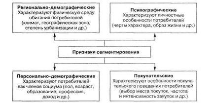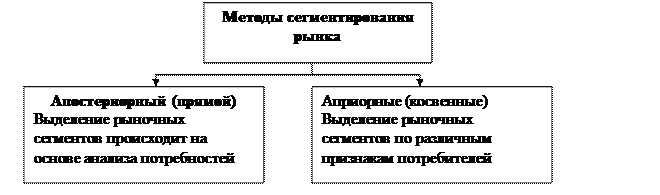 Апостериорное сегментирование предполагает знание системы ценностного восприятия товара потребителями. Сегменты отличаются друг от друга значимостью, придаваемой отдельным атрибутам или свойствам товара в ситуации выбора. В качестве инструмента апостериорного сегментирования могут рассматриваться мультиатрибутивные модели товара. Априорное сегментирование основано на предположении о том, что различия характеристик потребителей определяют различия в их предпочтениях. Характеристики потребителей, определяющие различия в предпочтениях потребителей, называются признаками сегментирования. По сути, они представляют собой правила выделения рыночных сегментов.