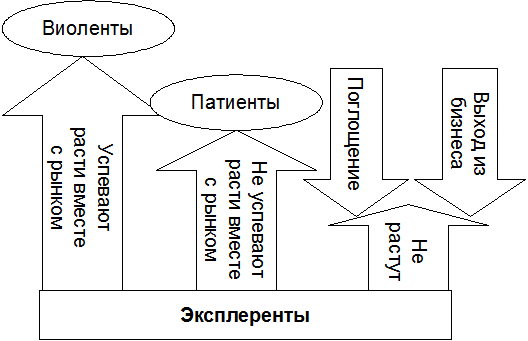 Предприятия-эксплеренты (первые ласточки) – в основном небольшие организации. Главная роль в экономике – инновационная, состоит в создании радикальных, прорывных нововведений: новых продуктов и новых технологий во всех отраслях экономики. Нередко их деятельность предопределяет формирование новых отраслей и видов бизнеса. Отличаются своей целеустремленностью, преданностью идее, высоким профессиональным уровнем своих сотрудников и их лидера, большими удельными расходами на НИОКР.