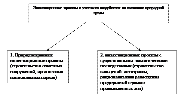 Рис 1. Основные разновидности проектов с точки зрения воздействия на состояние природной среды С учетом различий в содержании и назначении также разграничиваются следующие разновидности природоохранных проектов и мероприятий: